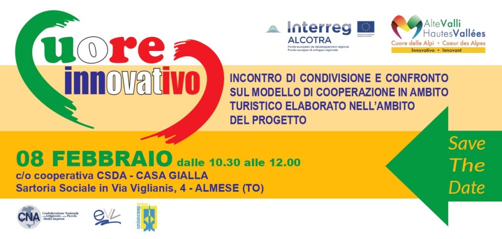 Nell’ambito del progetto Cuore Innovativo, rivolto agli stakeholder pubblici e privati della Val Susa e Val Sangone, si terrà un incontro di condivisione e confronto sul modello di cooperazione in ambito turistico: saranno presentati i contenuti finora realizzati e verranno raccolti suggerimenti strategici utili alla definizione di un manuale dedicato a valorizzare e sostenere la creazione di valore e business delle Cooperative Sociali che sviluppano servizi e attività turistiche.