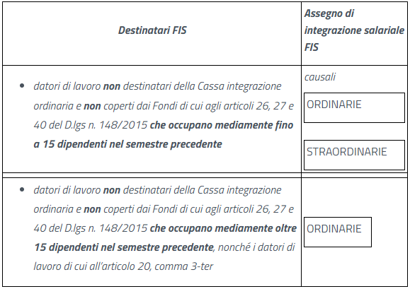 il potenziale riconoscimento dell’assegno di integrazione salariale erogato dal FIS in favore dei datori di lavoro di lavoro fino a 15 dipendenti NON SOLO PER LE CAUSALI ORDINARIE, MA ANCHE PER LE CAUSALI STRAORDINARIE (in recepimento di una puntualizzazione normativa introdotta con il D.L. 4/2022) – per i datori di lavoro con oltre 15 dipendenti il FIS eroga l’assegno di integrazione salariale solo per causali ordinarie, dato che le stesse imprese sono da inizio anno ricomprese nel campo di applicazione della CIGS;